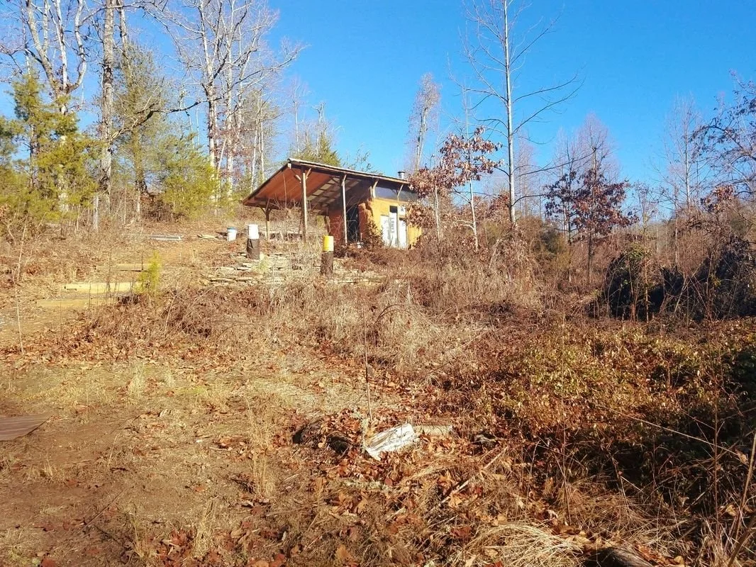 Here, take a closer look. You can see the lovely red, Carolina clay and tulip poplar bark siding about the soon to be door.